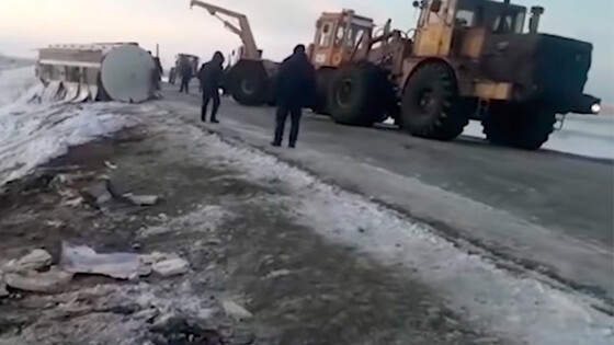 Кража спирта из перевернувшейся в Казахстане цистерны попала на видео