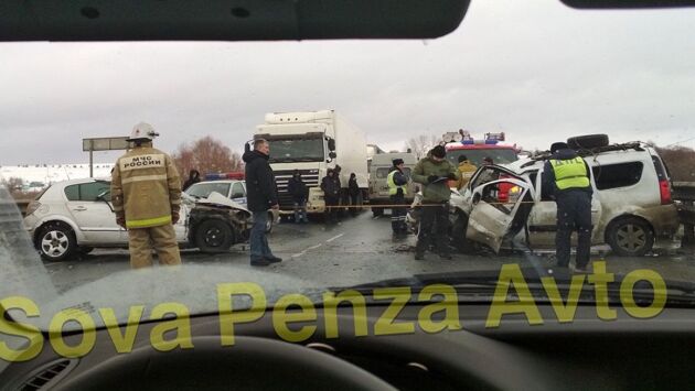 На трассе под Пензой две искореженные машины перекрыли проезжую часть