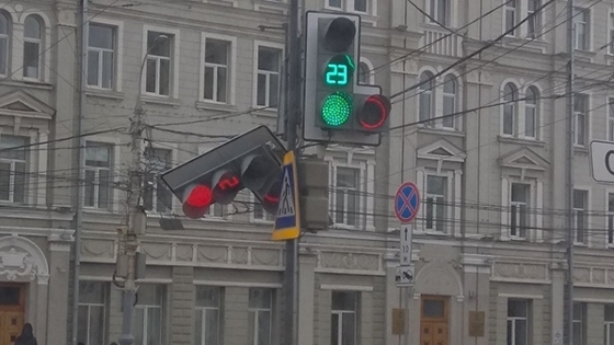 В центре Воронежа автомобилисты сфотографировали приунывший светофор