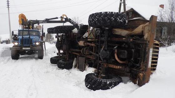 В Омутнинске на улице опрокинулся грузовик с дровами