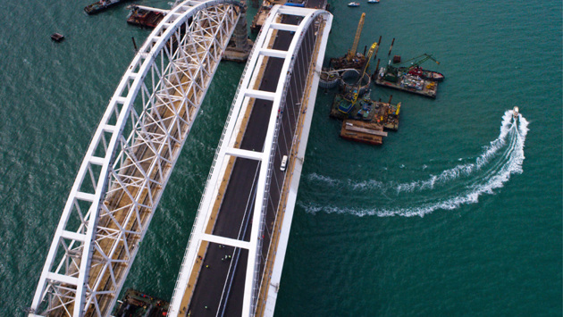 Грузовой автомобиль протаранил легковой на Крымском мосту, рассказали РИА Новости в пресс-службе местного управления Министерства чрезвычайных ситуаций.
