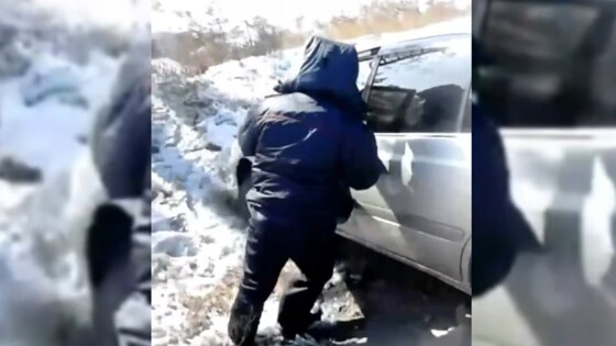 Авария произошла днем 20 февраля на Спиртозаводской трассе в пригороде Улан-Удэ. На кадрах видно оказавшуюся в кювете Toyota Premio, причем сидящий за рулем страж порядка вообще никак не реагирует на происходящее, а его товарищ с трудом держится на ногах и не отвечает на вопросы.