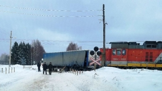 Вчера днём в Судиславском районе Костромской области произошло ЧП с участием тепловоза и грузовика, сообщает региональное управление МЧС. Водитель фуры не успел провести машину через железнодорожный переезд, от столкновения с тепловозом прицеп авто занесло. Сообщение о столкновении в населенном пункте Воронье поступило вчера в 13.45. Железнодорожный переезд имеет местное значение, по нему возят лес. Локомотив, шедший по ветке проверял пути, водитель просто не успел преодолеть переезд,- рассказали в пресс-службе МЧС. Как удалось узнать K1NEWS.RU, в аварии никто не пострадал, однако, последствия ЧП устранялись до вечера. По факту произошедшего проводится проверка.