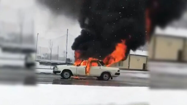 Горящий автомобиль попал на видео во Владикавказе