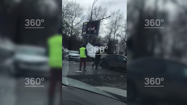 Грузовик и три легковушки вдребезги разбились в Москве. Видео