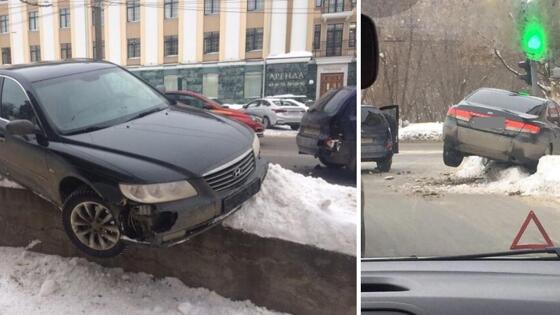 В Кирове автомобиль после аварии повис на бордюре