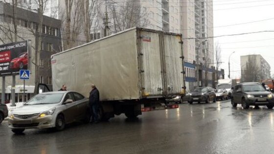 На Чернышевского перекрыли проезд столкнувшиеся грузовик и иномарка