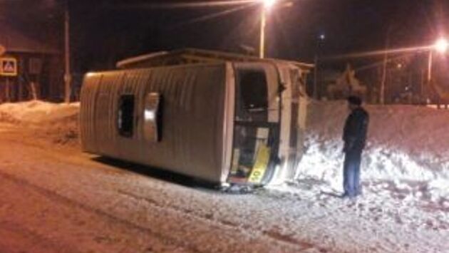 В Архангельске из-за удара машины перевернулся автобус с пассажирами