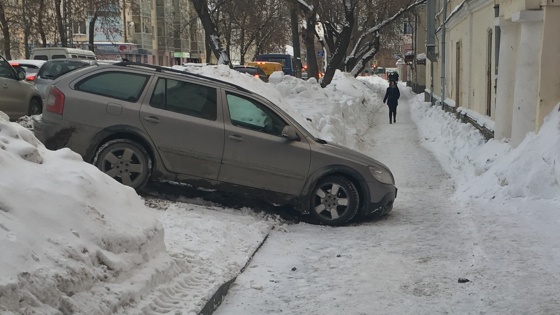 Продолжаем публиковать снимки автомобилей, способ парковки которых вызывает вопросы с точки зрения правил дорожного движения. В этой подборке оказалось несколько фотографий, на которых водители образовали целые стоянки в запрещенных местах. Причина — выпавший снег, который скрыл границы между дорогами, тротуарами и газонами. Помните, что жалобы на автовладельцев, паркующихся как попало, принимают через специальную форму на сайте регионального МВД и в ГИБДД по телефону дежурной части +7 (343) 263-19-02. Присылайте фото машин автохамов на нашу электронную почту parkovka@e1.ru (обязательно указывайте дату и место съемки, а когда делаете снимки, держите телефон горизонтально, чтобы изображения получались максимально информативными). А теперь рассмотрим самые интересные случаи нарушения ПДД. На этот раз прокомментировать фотографии нам помог автоэксперт Кирилл Форманчук. В конце публикации — традиционное голосование за снимок самой возмутительной парковки. Предъявите документы об инвалидности Этот снимок был сделан на улице Сакко и Ванцетти. Читатель обратил внимание, что на Porsche нигде нет знака «инвалид». В центре Екатеринбурга места для инвалидов часто находятся под прицелом водителей, ищущих, где бы припарковать автомобиль. Даже крупные штрафы не помогают: нарушителей меньше не становится. — Ничего удивительного нет в том, что некоторые инвалиды могут позволить себе хорошие и дорогие автомобили. Наличие инвалидности не означает, что человек должен жить в нищете. Можно только радоваться, что наличие инвалидности не мешает людям покупать такие машины. Но возможна и другая ситуация, когда водитель этой машины — просто автохам, который решил занять свободное местечко. Кстати, в ПДД уже давно содержится пункт, обязывающий водителя иметь при себе и передавать сотрудникам полиции документ, подтверждающий факт инвалидности, в случае управления транспортным средством, на котором установлен опознавательный знак «инвалид». Если бы рядом был гаишник, то он смог бы попросить такой документ или оштрафовать водителя на 5 тысяч рублей за парковку в данном месте без документов, подтверждающих, что он инвалид. Автохамы широкой души Наверняка эти водители рассудили, что на просторном тротуаре места хватит для всех: и для пешеходов, и для автомобилей. Иначе не объяснить столь массовое пренебрежение правилами. Видимо, в этом месте такую картину можно наблюдать ежедневно. — Для Екатеринбурга удивительная картина, когда зимой тротуар и проезжая часть почищены и между ними видна граница. Водителям парковаться на тротуарах нельзя, а ГИБДД может устроить в этом месте массовую эвакуацию. С другой стороны, можно было бы сделать пошире дорогу, а тротуар — поуже. Сомневаюсь, что на улице Михеева такой пешеходный трафик, что нужен тротуар шириной три метра. «Арка» над тропинкой Экскаватор-дробилку припарковали так, что его стрела нависла как раз над пешеходной тропинкой. Это не понравилось нашему читателю, и он прислал снимок с вопросом, есть ли тут нарушение. — Непонятно, что там делает строительная техника. Возможно, готовится произвести раскопки, или автохам-тракторист решил сходить домой на ужин, перегородив пешеходную дорожку. Если готовятся раскопки, то участок должен быть огорожен и должен быть обустроен путь обхода для пешеходов. Вообще автои