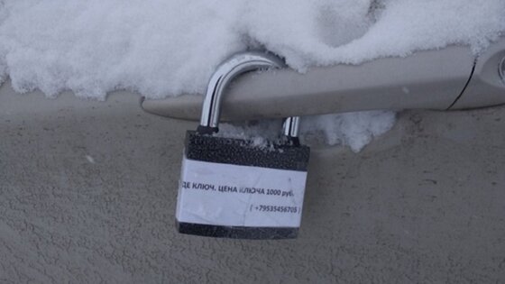 Фото: "ДТП Петрозаводска и Карелии" Неизвестный прикрепляет замки к дверям чужих автомобилей, требуя за ключ деньги Житель карельской столицы рассказал в соцсети «ВКонтакте» о новом виде мошенничества. Мужчина выехал по заказу на место ЧП, чтобы открыть подвешенный на ручку авто замок. Неизвестный прикрепил замок на дверную ручку автомобиля. Вместе с замком имелась записка с номером телефона и указанием того, что цена ключа – 1000 рублей, сообщает паблик в социальной сети «ДТП Петрозаводска и Карелии». Ее машина никому не мешала и «чужое место не занимала». Поясняю, что замок не мешает открыть машину, но при езде по нашим дорогам оставляет царапины. Не паникуйте и не ведитесь на развод (особенно девушек касается), - написал горожанин. По его словам, ключ может быть поблизости. Поэтому горожанин посоветовал осмотреть машину, заглянуть под колеса, под номер и под предметы поблизости - пакет, картонку и прочее. В случае же если ключа не нашли, замок следует обмотать тряпкой и доехать до ближайшей мастерской, где его спилят. Такой замок в магазине стоит около 300 рублей, поэтому мошенник тоже будет в убытке и, может, через пару-тройку раз все-таки поймет, что действует некрасиво, выражает надежду автор поста.
