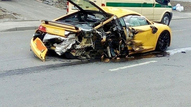 Новый спорткар Audi R8 превратился в груду металла, после столкновения с военным КАМАЗом в Ростове-на-Дону. Авария произошла 6 марта в районе 16:00 в Ростове-на-Дону на улице 56-й армии. По свидетельствам очевидцев, желтый Audi R8 уже давно стал героем социальных сетей юга России. Его владелец устраивал со спорткаром фотосессии и быстро гонял по улицам Ростова-на-Дону и области. По предварительным данным, водитель выехал на полосу встречного движения, где и произошло столкновение с военным КАМАЗом. Лишь по счастливой случайности в аварии никто не пострадал.