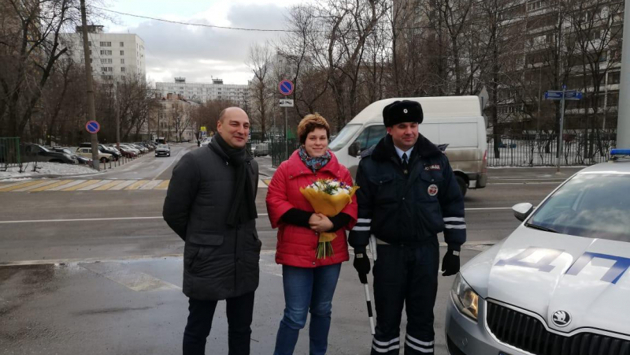Сотрудники ГИБДД УВД по ЦАО поздравили автоледи с Международным женским днём