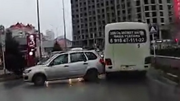 Перепутал педали? Странное ДТП у «Красной площади» (видео) Автомобиль «Лада Калина» поехал задом поперёк дороги, задел автобус и снёс ограждение у новостройки. В Интернете размещена видеозапись с регистратора автомобиля, оказавшегося на месте происшествия. Судя по записи, ДТП случилось вчера в 7 часов 52 минуты в районе автобусной остановки «Красная площадь». «Лада Калина» ехала по проезжей части от кольца на улице Объездная в сторону улицы Омелькова. Следом за ней двигался жёлтый автобус. Оба транспортных средства стали поворачивать налево к Торгово-развлекательному центру. При этом автобус занял много места на въезде к ТРЦ и легковой автомобиль не смог втиснуться между автобусом и газоном. «Лада Калина» начала немного сдавать назад, чтобы вырулить на проезд к «Красной площади» за уже проехавшим автобусом и не задеть правым колесом бордюр. При этом почему то продолжила движение задом, задела выехавший с остановки автобус 9-го маршрута, переехала газон, пешеходную дорожку (где чуть не сбила прохожего), сломала забор и ударилась багажником в стену недавно построенного многоквартирного дома (улица Астраханская, дом 97). Мы продолжаем выяснять подробности этого ДТП. Следите за публикациями «Анапского Черноморья».