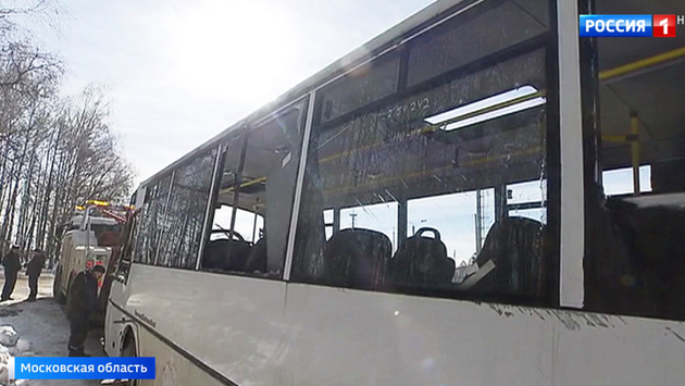 В аварии с участием автобуса под Сергиевым Посадом по последним данным пострадали 13 человек. Все они — сотрудники ведомственного пансионата. Их автобус опрокинулся на полном ходу после столкновения с легковушкой. И это не единственная крупная авария за последние несколько часов, в которой много пострадавших. Эти кадры сняты через несколько минут после аварии: большинство пострадавших самостоятельно выбираются из автобуса. Но есть и пассажиры с серьезным травмами, они не могут сдержаться из за сильной боли. Слышны крики. Авария произошла на перекрестке в районе Сергиева Посада. Легковушка на высокой скорости пыталась проскочить на мигающий желтый сигнал светофора. Когда водитель заметил автобус, который уже начал движение, было поздно. Затормозить никто не успел. Асфальт после ночных заморозков был еще скользкий. Удар оказался несильным и пришелся в район задней двери. Но за счет того, что автобус уже был в движении, а скорость у нарушителя была большой, машину начало раскачивать, и в итоге она перевернулась в кювет. Ведомственный автобус перевозил сотрудников пансионата, который находится возле поселка Лоза. Пострадали тринадцать человек. В основном ушибы, но троих все же пришлось госпитализировать. По словам медиков, их жизни ничего не угрожает. Тем не менее, с переломами им придется провести в больнице несколько недель. Это не единственное ДТП с пострадавшими, которое произошло сегодня. Три человека получили травмы в массовой аварии на Каширском шоссе — и снова причиной стала скользкая дорога. На Ленинградском проспекте водители не смогли затормозить из-за наледи на трассе, когда с второстепенной дороги неожиданно появился автомобиль, который пытался проехать на красный свет. Четыре человека в больнице.
