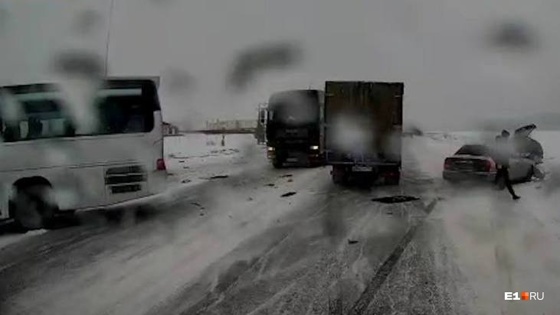 Сегодня утром на въезде в Полевской произошло ДТП с пассажирским автобусом. Как рассказал читатель Е1.RU Дмитрий, «четырнадцатая» поворачивала на заправку, но не заметила автобус. — Парень на «четырнадцатой» сказал, что автобус не заметил. Автобус въехал в «четырнадцатую» — и ее откинуло на Hyundai Accent. ВАЗ поворачивал на АЗС перед автобусом и не пропустил его, — рассказал Дмитрий. Авария попала на камеру видеорегистратора. На кадрах видно, как автобус съезжает с дороги и врезается в стенд с ценами на бензин. Машины сильно разбиты, но, по словам очевидца, все остались живы и никто не пострадал. — Водитель ВАЗ-2114 при совершении обгона выехал на встречную полосу, где столкнулся с автобусом Kia Granbird, после чего врезался в Hyundai Accent, — рассказали Е1.RU в отделении пропаганды ГИБДД Свердловской области. — Водитель автобуса успел среагировать и от столкновения ушёл в кювет, у автобуса незначительные повреждения. В автобусе было 17 пассажиров, они ехали из Екатеринбурга в Полевской. Позже стало известно, что в аварии пострадал водитель «четырнадцатой». Мы готовили инструкцию, как помочь пострадавшему в ДТП и не навредить ему ещё больше
