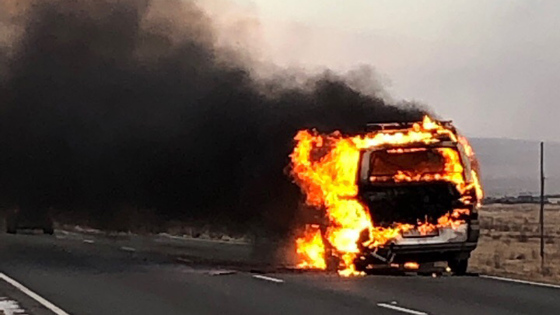 Маршрутка Чита - Борзя полностью сгорела на трассе. ВИДЕО
