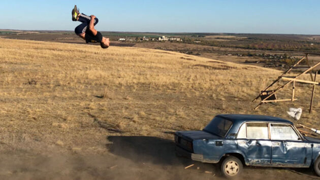Ростовчанин прославился в Сети после выхода нескольких видеороликов, где он исполняет опасные трюки на автомобилях или в экстремальных условиях. На очередной записи видно, как каскадер стоит на деревянной лестнице посреди дороги, а на него несутся на скорости в 80 километров в час сразу два автомобиля, сметая опору на своем пути. Чеботарев ловким прыжком в последний момент покидает опасную зону и благополучно приземляется на землю позади промчавшихся мимо авто. Сам экстремал призывает зрителей ни в коем случае не повторять его трюки во избежании несчастных случаев.