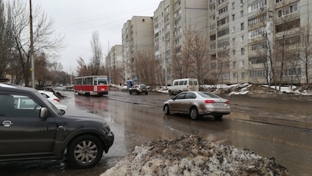 Сегодня, 17 марта, в Саратове очереднаямашина провалилась в дорожную яму. Как сообщает корреспондент ИА «Свободные новости», у дома №225 по улице Огородной водитель автомобиля Volkswagen не заметил глубокую выбоину и въехал в неё правым передним колесом. ДТП произошло прямо на путях трамвая №8, из-за чего движение вагонов этого маршрута в сторону центра города оказалось прервано. В группе «Трамваи и троллейбусы Саратова» ВКонтакте пока о происшествии не сообщается.