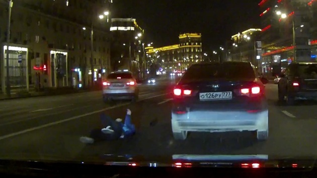 Нарушитель поплатился за попытку пересечь Садовое кольцо в неположенном месте. Видео