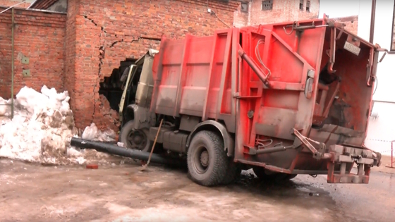 Мусоровоз без водителя проломил в Иванове кирпичную стену