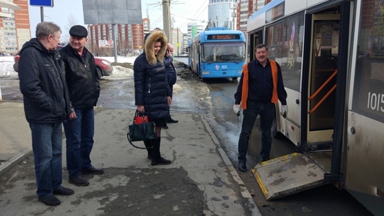 Совместно с представителями предприятий-перевозчиков начальник Управления транспорта и связи города Пензы Юлия Еремина проверила исправность откидных аппарелей в автобусах большого класса и троллейбусах на конечных остановках «Запрудный» и «Арбековская застава». Обследовано 12 единиц общественного транспорта, которые оборудованы откидными спусками. Все устройства находятся в рабочем состоянии, водители обладают навыками работы с ними. По итогам совещания предприятиям-перевозчикам дано поручение проводить еженедельный осмотр работоспособности откидных аппарелей. В настоящее время платформами оборудованы 20 троллейбусов, работающих на маршруте № 7, и 44 автобуса большого класса: 31 работает на маршруте № 54 и 13 на маршруте № 82с. Фотография: penza-gorod.ru