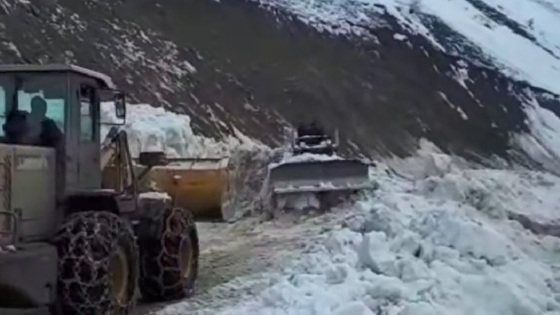 Лавина накрыла бульдозер с рабочими на горной дороге в Киргизии. Видео