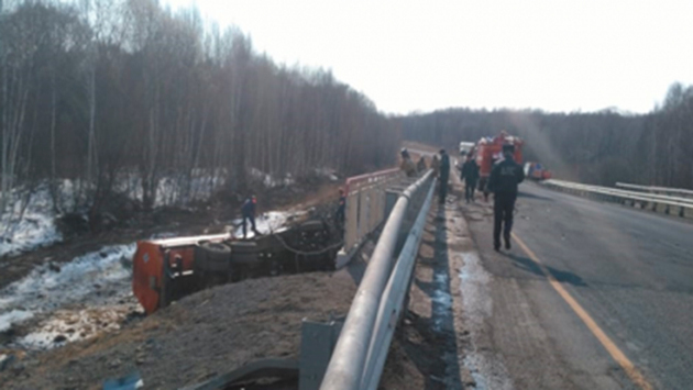 Под Хабаровском бензовоз перевернулся на полной скорости: видео