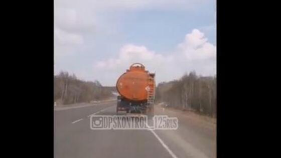 Момент страшной дорожной аварии на трассе Хабаровск - Владивосток попал на камеру очевидца, сообщает PRIMPRESS. Инцидент произошел 512-м километре трассы в районе села Константиновка в Спасском районе. Бензовоз слетел с трассы и перевернулся, после чего произошел разлив дизтоплива. На кадрах, случайно снятых очевидцем, видно, как бензовоз петляет, а потом постепенно съезжает с дороги и заваливается на бок. «Крайне неадекватный водитель. То налево фигачит, то направо, то камешками нас закидывает», - говорит голос за кадром. В этот момент бензовоз вылетает с трассы.