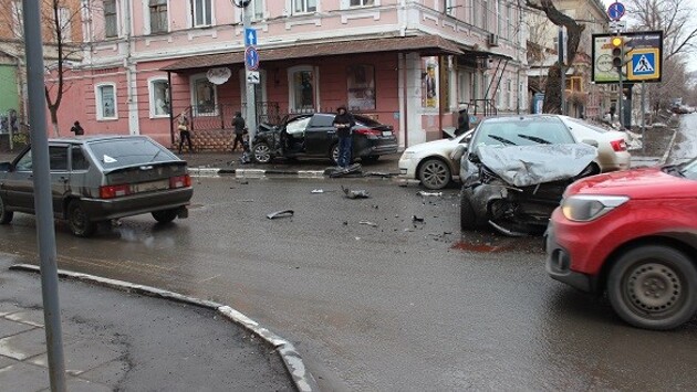 В Саратове молодая автоледи учинила ДТП, проехав на запрещающий сигнал светофора. Авария произошла утром 3 апреля на перекрестке улиц Большая Казачья и Вольская. Столкнулись "Лада Веста" и Kia Optima. По словам очевидцев, девушка за рулем отечественной машины решила проскочить на красный, но не успела и столкнулась с Kia Optima. От удара машину занесло в столб на обочине. Виновница ДТП с травмами госпитализирована в больницу. Фото с места проишествия опубликовал очевидец Сейран Давтян на станице в Facebook: