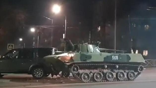 Очевидец запечатлел последствия аварии боевой десантной машины и внедорожника Land Rover. Дорожно-транспортное происшествие произошло в Туле в ночь на вторник 26 марта. На ролике видно, что военная машина повредила заднюю часть джипа, сообщается, что в результате инцидента никто не пострадал. В командовании Воздушно-десантных войск сообщили о служебном разбирательстве, начатом по факту аварии с участием БМД-2, сообщает телеканал «Вести». По предварительным данным, виновником происшествия стал водитель внедорожника, который вклинился в колонну военных машин. В комментариях к видео, опубликованному в Instagram, пользователи удивились беспечности водителя и посмеялись над ним: — В этой махине нет лобового стекла, там окошко 10 на 5 сантиметров. Правило одно — не лезь в колонну, если между ними расстояние 30 метров, значит так положено по технике безопасности! А не для того чтоб машины туда перестроиться могли! — Ну куда он лез? — удивился другой комментатор. — Дороги и так убитые, водитель мог бы не торопиться, машину бы сохранил. Поспешишь, как известно, людей насмешишь. — С таким в разведку не пойдешь! По сообщению военного ведомства, водитель легкового автомобиля, нарушив правила дорожного движения, вклинился в воинскую колонну и допустил столкновение с военной техникой. Читайте также: Как корреспондент «ВМ» стал водителем бронетранспортера