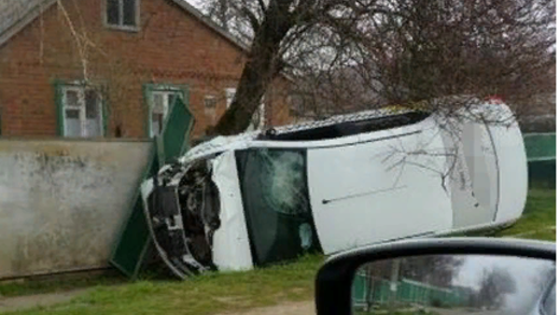 В Динском районе такси снесло забор и перевернулось