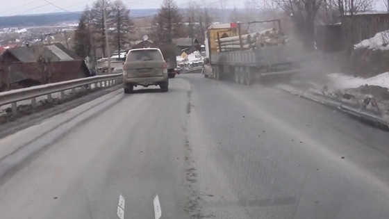 В пятницу, 29 марта, в городе Чусовом произошло дорожно-транспортное происшествия, которое вполне могло бы иметь тяжелые последствия, однако, по предварительным данным, в результате инцидента никто не пострадал. На записи, сделанной автомобильным регистратором, можно наблюдать внезапное появление фуры. Автор видео, ехавший в пробке, заметил опасность, своевременно посмотрев в зеркало заднего вида и благополучно избежал столкновения с грузовиком. К счастью, спасительный маневр повторили и другие автомобилисты, оказавшиеся на пути и фуры. Водитель грузовика, у которого, по одной из версий, произошли неполадки в тормозной системе, всеми силами старался избежать столкновения с другими участниками дорожного движения, гася скорость за счет препятствий на обочине, куда он сумел вырулить.