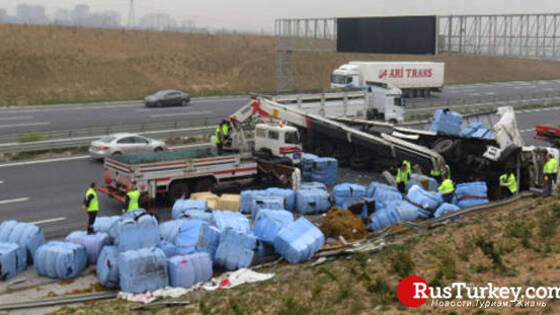В Стамбуле на трассе Кузей Мармара перевернулось длинномерное транспортное средство, перевозивший текстильные материалы, сообщает Milliyet 2 апреля 2019 года. Утром в стамбульском районе Санджактепе на скоростной автомагистрали в направлении моста Султана Селима Явуза произошла авария. Водитель грузовой фуры не справился с управлением и грузовой автомобиль выбросило на обочину. Ударившись о дорожное ограждение фура опрокинулась и остановилась только проехав на боку 20 метров. Водитель фуры отделался легким испугом, не получив ни каких травм в результате аварии. Вывалившиеся из кузова тюки с текстилем разбросало по дороге, а сама трасса оказалась перекрыта опрокинувшимся транспортным средством. Прибывшие на место происшествия полицейские перекрыли одну полосу дороги для движения автотранспорта, дорожные службы при помощи автокрана убрали фуру и груз с проезжей части. Спустя час движение было восстановлено.