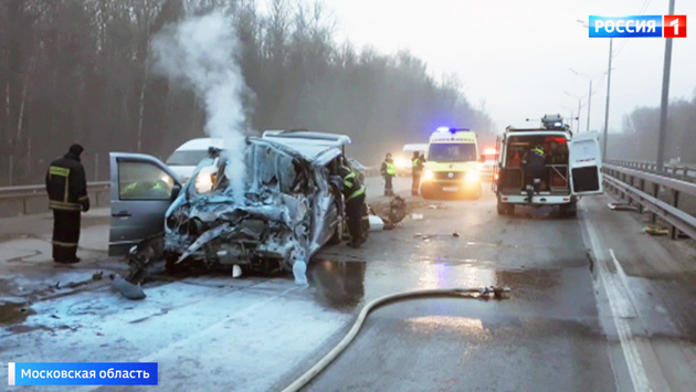 Водитель микроавтобуса, который этим утром на трассе "Дон" налетел на фуру в Домодедове, перевозил людей нелегально, сообщил Ространснадзор. В результате аварии погибли 6 человек. Двое госпитализированы. Один из пострадавших сейчас в реанимации. Авария произошла еще до рассвета, около 5 утра. Микроавтобус, который ночью выехал из Тулы, не доехал до Москвы 64 километра. Столкновение произошло во втором ряду, удар был такой силы, что многотонную фуру, которая стояла на месте, откатило на 20 метров. Передняя часть микроавтобуса оказалась полностью разрушена. "Произошло возгорание газового баллона двигателя минивэна, в результате чего на месте происшествия погибли 6 пассажиров", — сообщила Ольга Врадий, старший помощник руководителя ГСУ СК РФ по Московской области. Пожар, который возник сразу после удара, потушили водители проезжавших мимо машин. Они же вызвали спасателей и скорую помощь. Шесть человек погибли на месте, двое госпитализированы. Известно, что одна из пострадавших — восьмилетняя девочка — находится в реанимации. "Ребенку проведена экстренная операция, чтобы остановить внутрибрюшное кровотечение. Сейчас оба пациента находятся в реанимации. Ребенка планируется перевести в НИИ травматологии и ортопедии. Состояние молодого человека стабильное, пока он лечится у нас. Пациенты достаточно тяжелые, поэтому прогнозов пока давать не будем", — рассказал Сергей Маркитан, заместитель главного врача по медицинской части Домодедовской центральной городской больницы. Водителя фуры сейчас опрашивают. Рассматриваются сразу несколько версий случившегося: водитель мог уснуть за рулем, либо нарушил правила дорожного движения — несоблюдение дистанции привело к столкновению с притормозившей фурой. "К ликвидации последствий ДТП привлекалось 32 человека, 11 единиц техники. От МЧС — 6 человек, 2 единицы техники", — заявил Вячеслав Кочкин, старший оперативный дежурный Центра управления в кризисных ситуациях ГУ МЧС России по Московской области. Личности погибших устанавливают. Движение по федеральной трассе "Дон" не перекрывали, машины останутся на месте до завершения всех следственных действий. Уже установлено, что водитель микроавтобуса осуществлял перевозку людей незаконно. Он работал на маршруте как частное лицо, дублируя легальных перевозчиков. Микроавтобус, в котором погибли 6 человек, был выпущен 20 лет назад.