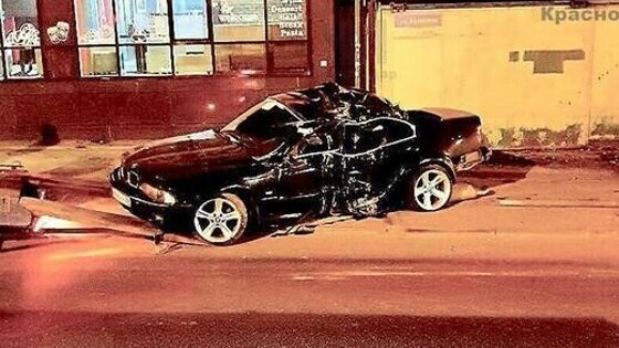 В Краснодаре водитель BMW превысил скорость и "встретился" со столбом