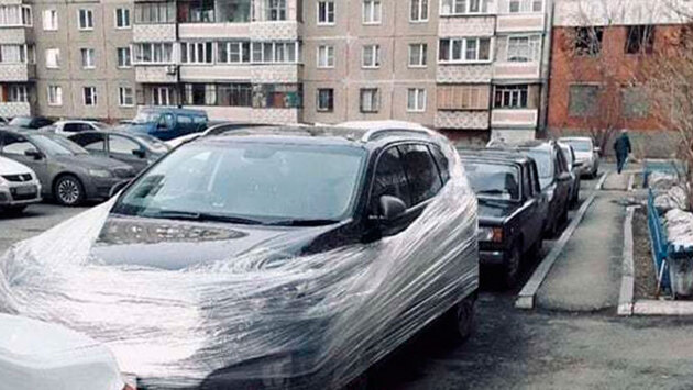 Человек-паук: в Барнауле неизвестный «пакует» автомобили нарушителей в пленку