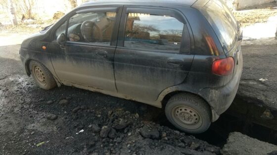 В Ленинском районе города Челябинска легковой автомобиль «Daewoo Matiz» провалилась под асфальт. «ЧП в Ленинском. Матиз провалился под асфальт», – сообщает подписчица группы «Типичный Челябинск». Горожане стали шутить на тему того, что автомобиль, являясь очень легким, оказался слишком тяжелым для дорог города. «Слишком тяжёлая машина для наших дорог…», — написал Александр. «Какой тяжелый Матиз», — предположил другой подписчик группы, Александр. Что делать в случае повреждения автомобиля от дорожной ямы и кто заплатит за материальный ущерб ранее для ИА «Уральский меридиан» рассказал специалист юридической компании «Точка док». Фото «Типичный Челябинск».