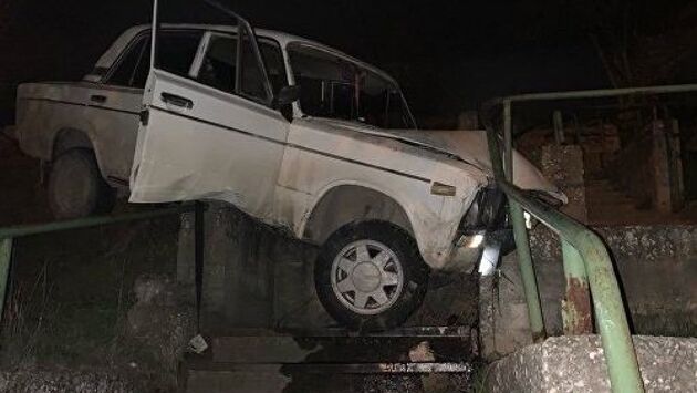 В Севастополе "Жигули" завис на лестнице