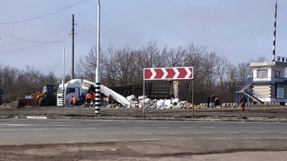 Причиной ДТП мог стать густой туман на дороге. Как стало известно интернет-изданию «Новости Саратова» в одной из групп в соцсети «Вконтакте», инцидент с фурой произошел 7 апреля на участке федеральной трассы, проходящей через Калининск. По предварительным данным, в результате случившегося никто не пострадал. В комментариях пользователи соцсети отмечают, что на дороге плохая видимость. Очевидцы случившегося пишут, что водитель грузовика MAN с краснодарскими номерами мог попросту не заметить кольцо и не вписался в поворот. Прицеп фактически рассыпался и на земле оказался весь груз — банки с краской. Проезжая часть залило голубой краской. Фото: соцсети