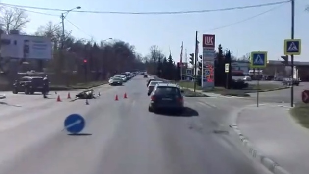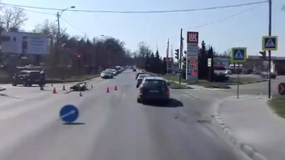 В Калининграде на ул. Суворова образовалась пробка из-за аварии с мотоциклом