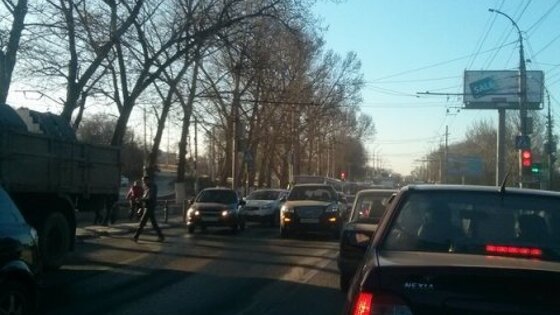 Сегодня, 18 апреля, утром на перекрестке проспекта 50 лет Октября и улицы Тракторной у моста «Стрелки» произошло троеное ДТП, сообщает корреспондент ИА «Свободные новости» с места происшествия. Из-за ночного похолодания на и без того сложном перекрестке большая лужа покрылась коркой льда. На скользкой дороге водитель кроссовера Lifan врезался в попутный КамАЗ с полным кузовом кирпича. В свою очередь в «Лифан» врезался ехавший сзади кроссовер Mitsubishi. По предварительным данным, в результате аварии никто не пострадал. При этом участники ДТП поочередно перегородили собой обе полосы движения по проспекту в сторону Ленинского района. В утренний час пик на магистрали, а также на мосту и на Тракторной быстро формируется дорожный затор. Как сообщает сервис «Яндекс. Пробки», скопление автомобилей на полосах движения проспекта 50 лет Октября в сторону центра города уже растянулось от «Стрелки» до перекрестка с улицей Технической и быстро растет.