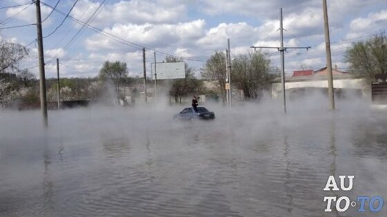 В Харькове прорыв трубы с горячей водой затопил авто с пассажирами