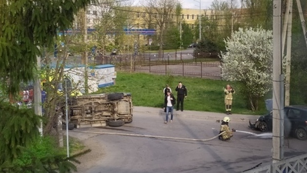 На перекрёстке Полецкой и Броненосной столкнулись две легковушки, одна перевернулась