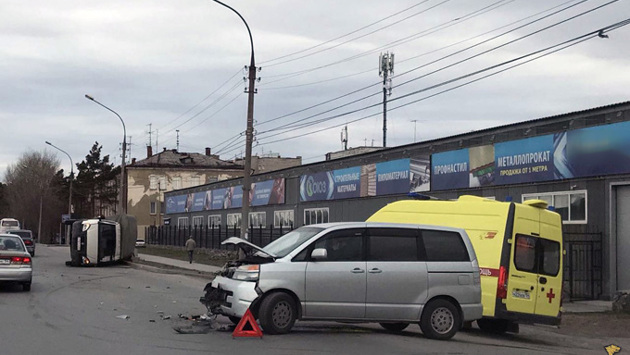Микроавтобус Toyota умудрился положить набок грузовик