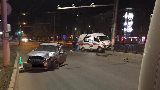 На Октябрьском проспекте в Кирове произошло ДТП. Об аварии сообщили очевидцы в социальных сетях. По информации местных жителей, в результате столкновения пострадали оба водителя автомобилей. При этом водитель «скорой», по словам очевидцев, не был пристегнут, поэтому пострадал серьезнее. Официальной информации о пострадавших и причинах аварии на данный момент нет. Фото – vk.com