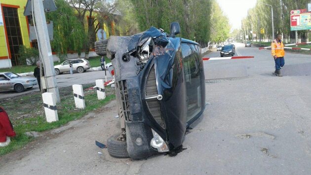 В аварии на ЖД переезде в Заводском районе перевернулся пьяный водитель