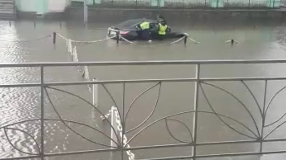 В ГИБДД рассказали подробности вчерашнего происшествия на перекрёстке улиц Белинского — Чайковского, когда инспекторам пришлось на руках эвакуировать женщину и детей из застрявшей в воде машины. Видео момента, как сотрудники ГИБДД несут на себе пассажиров легковушки, сложно оставить без внимания. — Двигатель автомобиля заглох в потоке воды, — рассказали в ГИБДД по Екатеринбургу. — В автомобиле находились мужчина, женщина и двое детей: девочки 7 и 9 лет. Автоинспекторы полка ДПС ГИБДД Екатеринбурга лейтенант полиции Генрих Шалкиев и капитан полиции Марсель Зарифулин, находясь на дежурстве, на патрульном автомобиле проезжали рядом и заметили легковой автомобиль, стоящий наполовину в воде. Инспекторы сообщили о произошедшем дежурному и вызвали эвакуатор. — Дети были напуганы и плакали, — сообщили подробности в Госавтоинспекции. — Инспекторы незамедлительно приняли решение перенести на руках детей и женщину. Мужчина наотрез отказался выходить из автомобиля в ледяную воду. Женщина и дети согрелись в патрульном автомобиле, а застрявший автомобиль вытянули из потопа при помощи троса. Напомним, вчера град обрушился на город во время праздничных массовых гуляний — ливнёвки не справлялись с потоком воды, многие улицы сильно затопило. Мы собирали всю информацию в режиме онлайн. Последствия случившегося были хорошо заметны и этим утром.