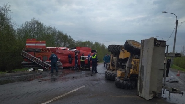 В субботу, 11 мая, на Вознесенском шоссе в городе Колпино, входящем в состав Санкт-Петербурга, пожарный автомобиль столкнулся с трактором. После ДТП оба транспортных средства перевернулись. Как утверждает один из очевидцев, трактор попытался развернуться, и в этот момент в него врезался спецтранспорт. По данным СМИ, пожарные спешили на вызов к месту аварии с пострадавшими. В настоящее время известно о двух травмированных – сотруднике МЧС и водителе трактора, получивших повреждения легкой и средней степени тяжести соответственно.