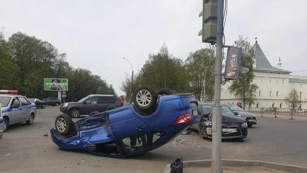 В центре Вологды перевернулась "Лада": пострадали водитель и пассажир