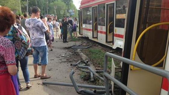 По словам одного из пассажиров, трамвай, ехавший в сторону города, сразу после пересечения с пр. Кирова сошел с рельс и врезался в металлическое ограждение, полностью смяв несколько его секций. Оба вагона трамвая были заполнены, но по предварительным данным обошлось без пострадавших.